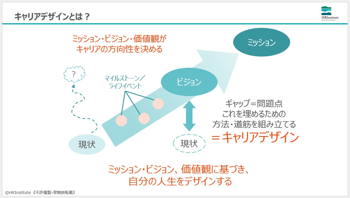 - 企業の中でキャリアデザインをする最も大きな価値は、組織と個人のエンゲージメントを向上させることにあります。本プログラムは、組織の観点を念頭に置きながら個人の目標について考えることで、組織とその中で働く個人がWIN-WINな関係を築くことを目指します。