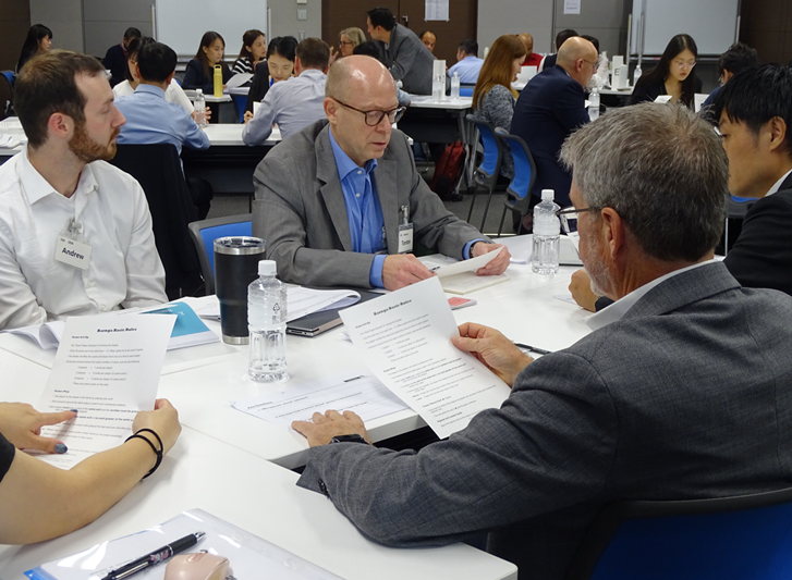 ロールプレイングの目的は、日本的コミュニケーションを体験しながら、的確に自分(自国)の意図を伝えて利害を調整するスキルを身につけることです。