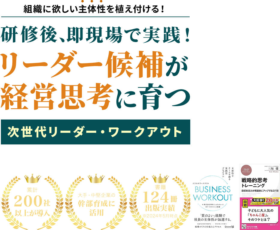 次世代リーダー・ワークアウトは企業の経営課題に沿って「完全カスタマイズ」で設計いたします。